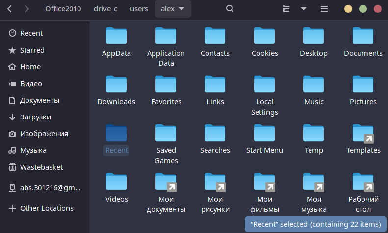 Внутри этой папки хранится drive_c — это и есть наш диск C. Перейдя в /Users/имя/, создайте папку Recent. Теперь все lnk-файлы будут сохранятся сюда и не засорять ваше рабочее пространство.
